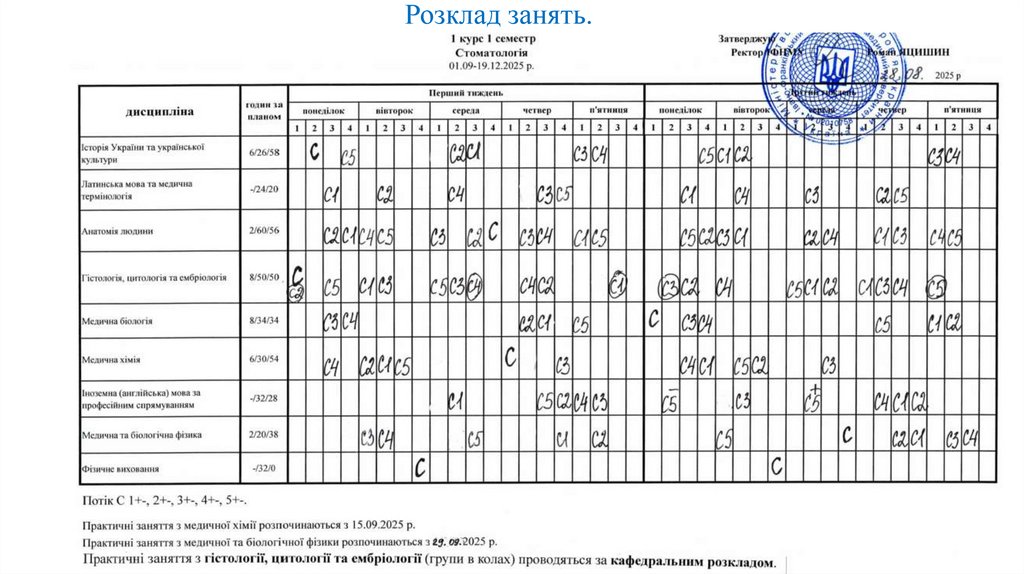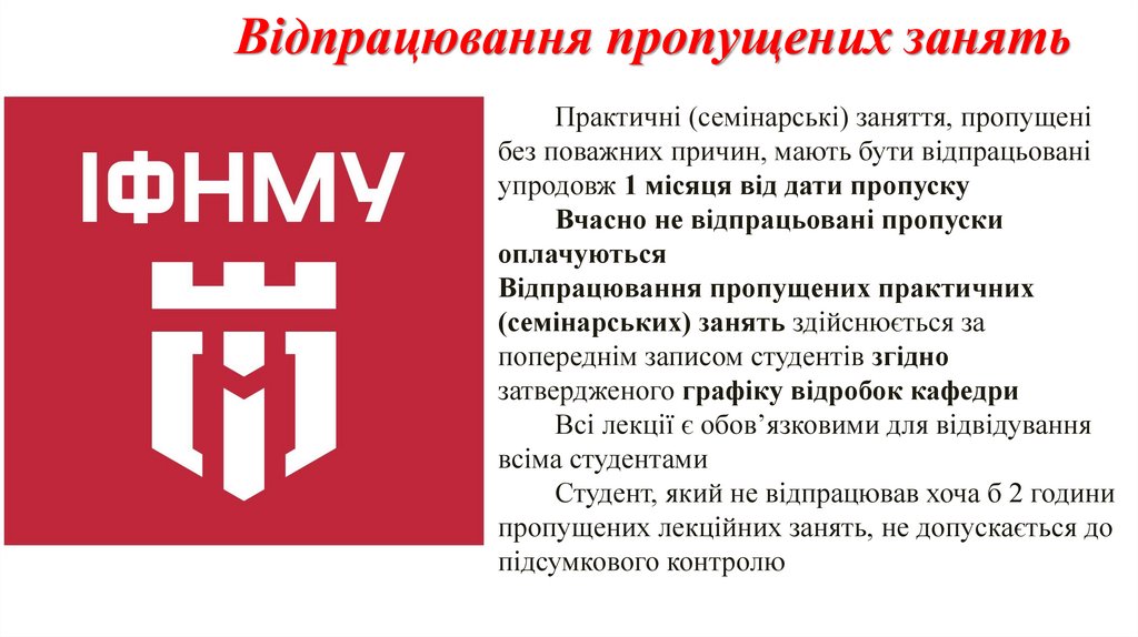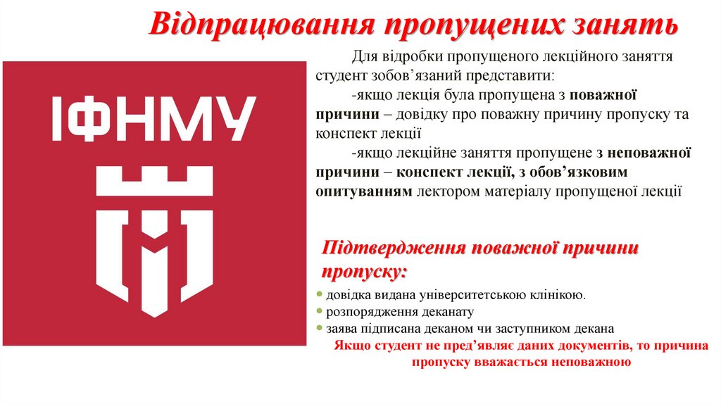 пропущених занять повинен мати підтверджену медичну довідку встановленої