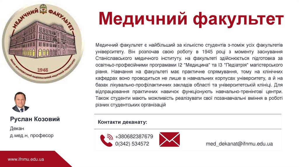 рівня. Навчання на факультеті має практичне спрямування, тому на клінічних