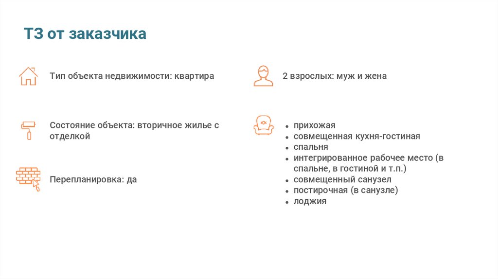 ТЗ от заказчикаТип объекта недвижимости: квартира