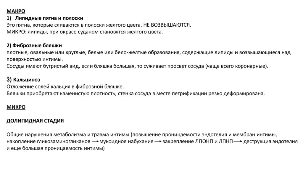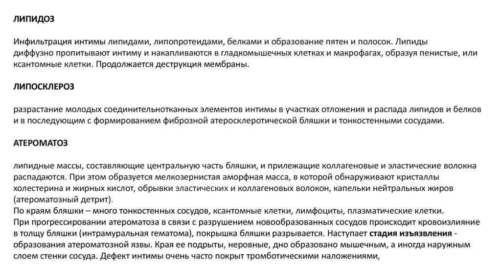 ЛИПИДОЗИнфильтрация интимы липидами, липопротеидами, белками и образование пятен и полосок. Липиды