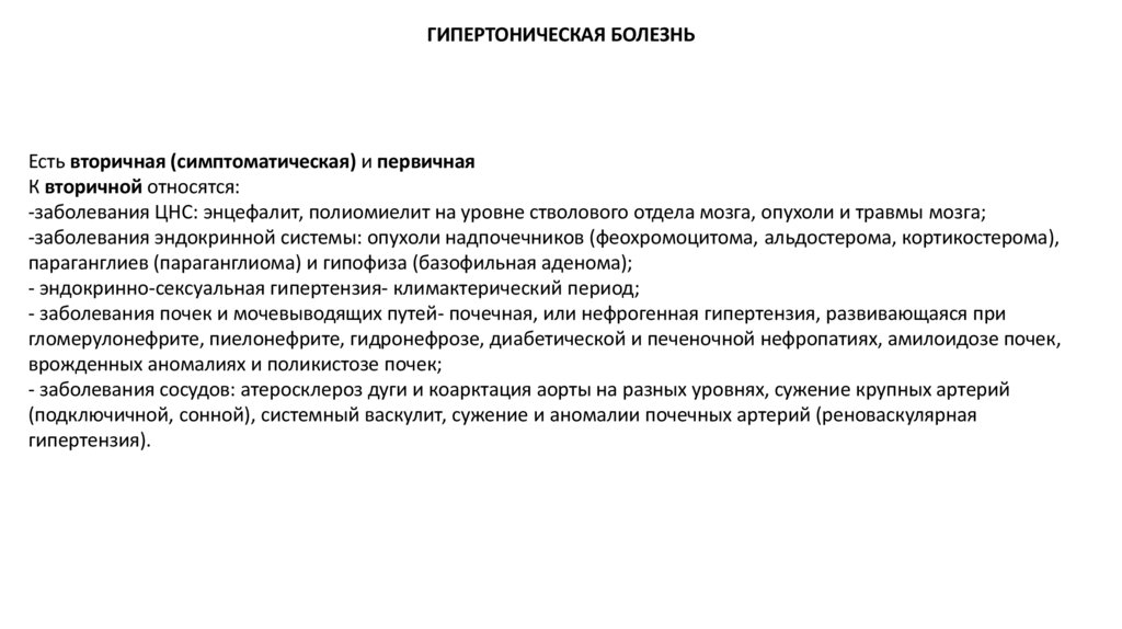 ГИПЕРТОНИЧЕСКАЯ БОЛЕЗНЬЕсть вторичная (симптоматическая) и первичная