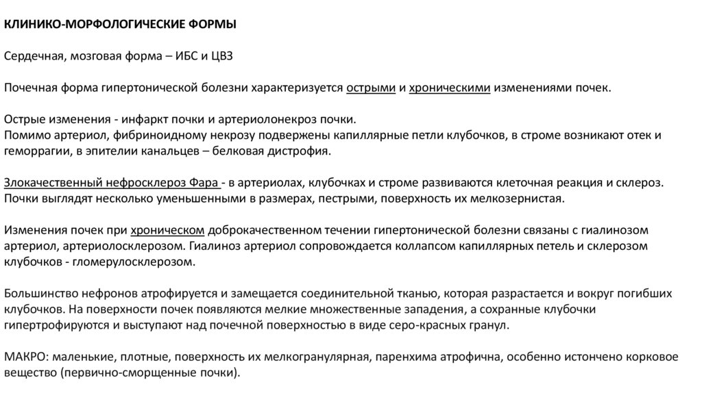 КЛИНИКО-МОРФОЛОГИЧЕСКИЕ ФОРМЫСердечная, мозговая форма – ИБС и ЦВЗ