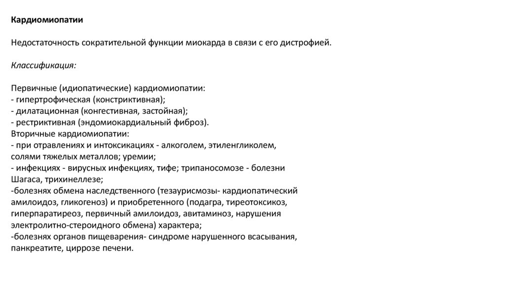 КардиомиопатииНедостаточность сократительной функции миокарда в связи с его дистрофией.