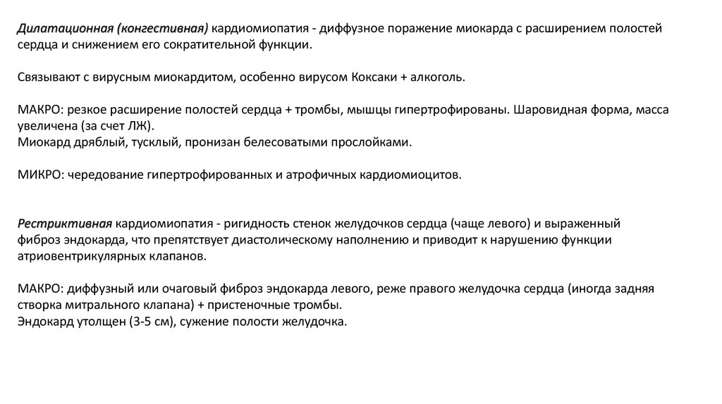 Дилатационная (конгестивная) кардиомиопатия - диффузное поражение миокарда с расширением полостейсердца и снижением его сократительной функции.