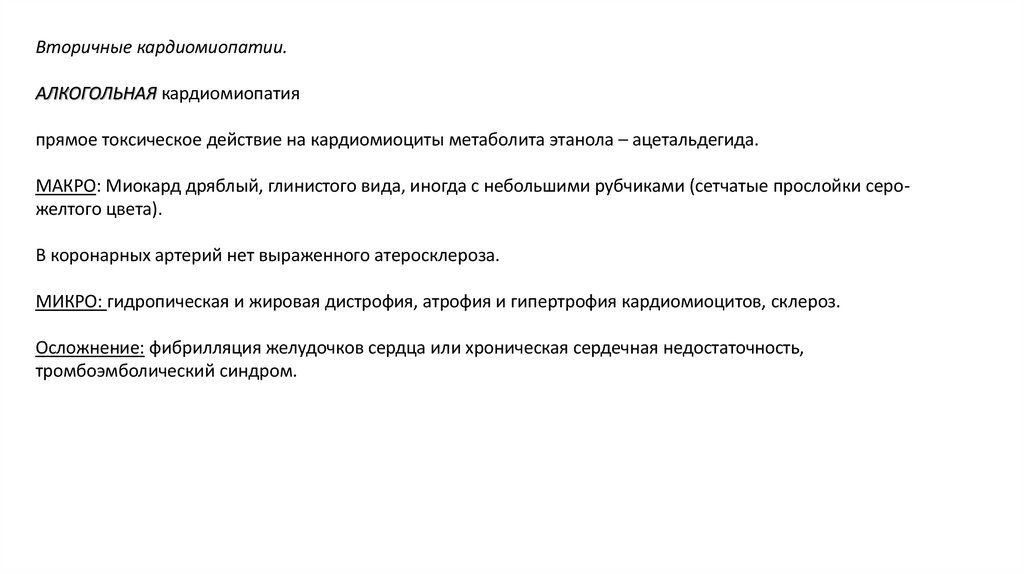 Вторичные кардиомиопатии.АЛКОГОЛЬНАЯ кардиомиопатия