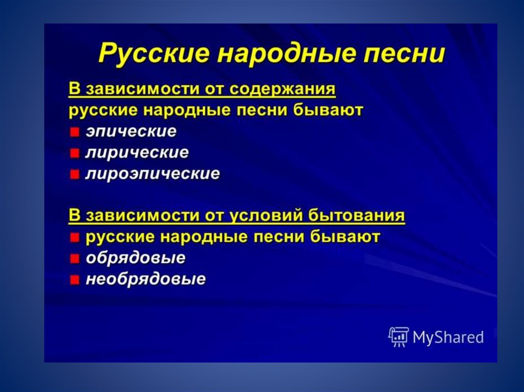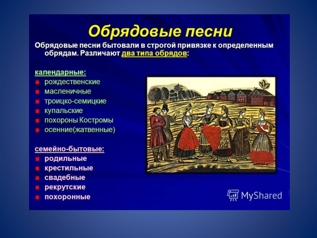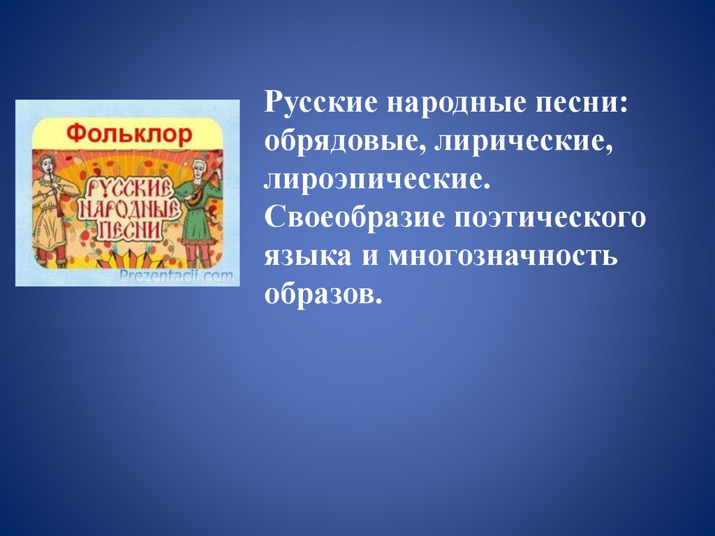 Русские народные песни: обрядовые, лирические, лироэпические. Своеобразие поэтического языка и многозначность образов