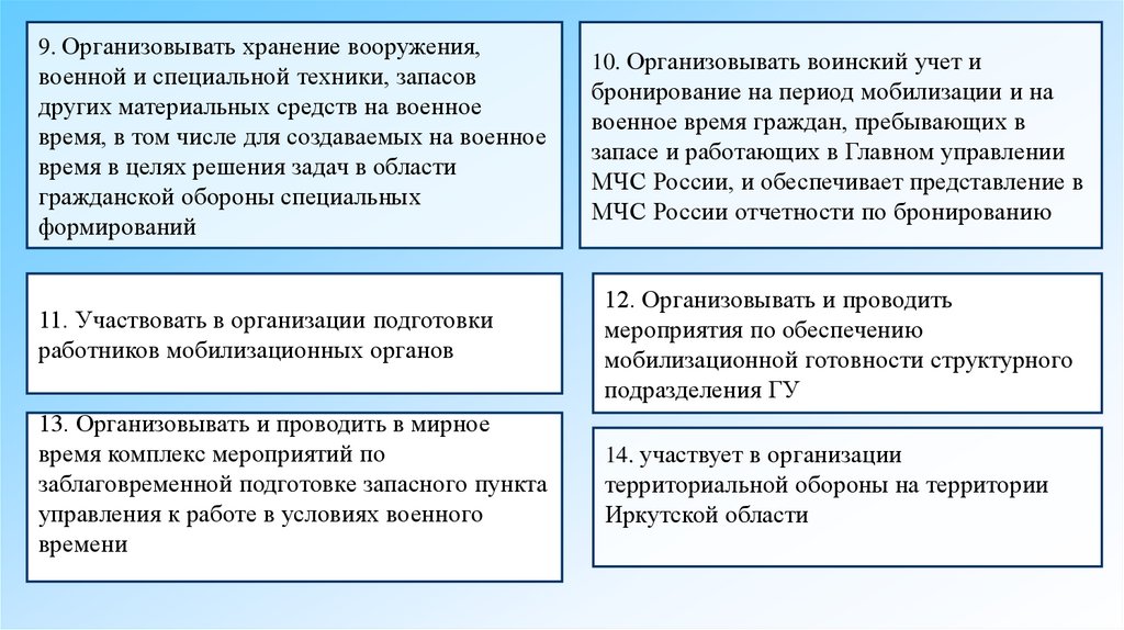 Общие обязанности должностных лиц по организации мобилизационной подготовки