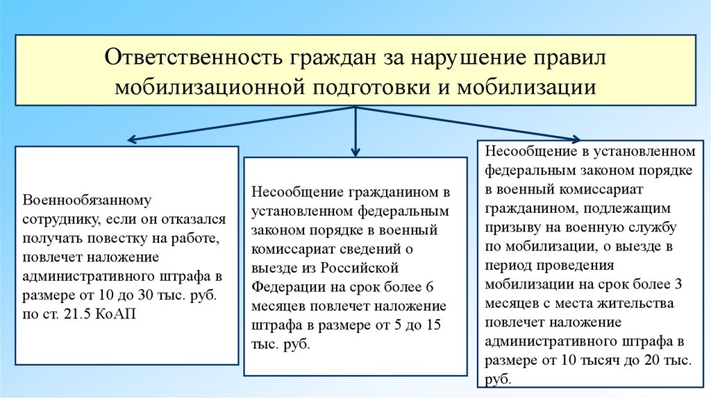 Ответственность граждан за нарушение правилмобилизационной подготовки и мобилизации