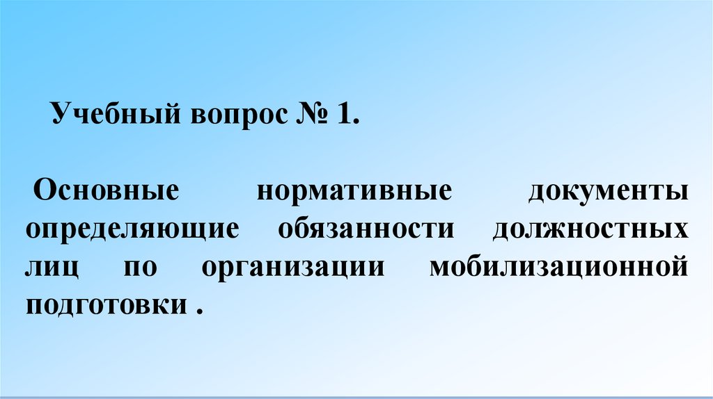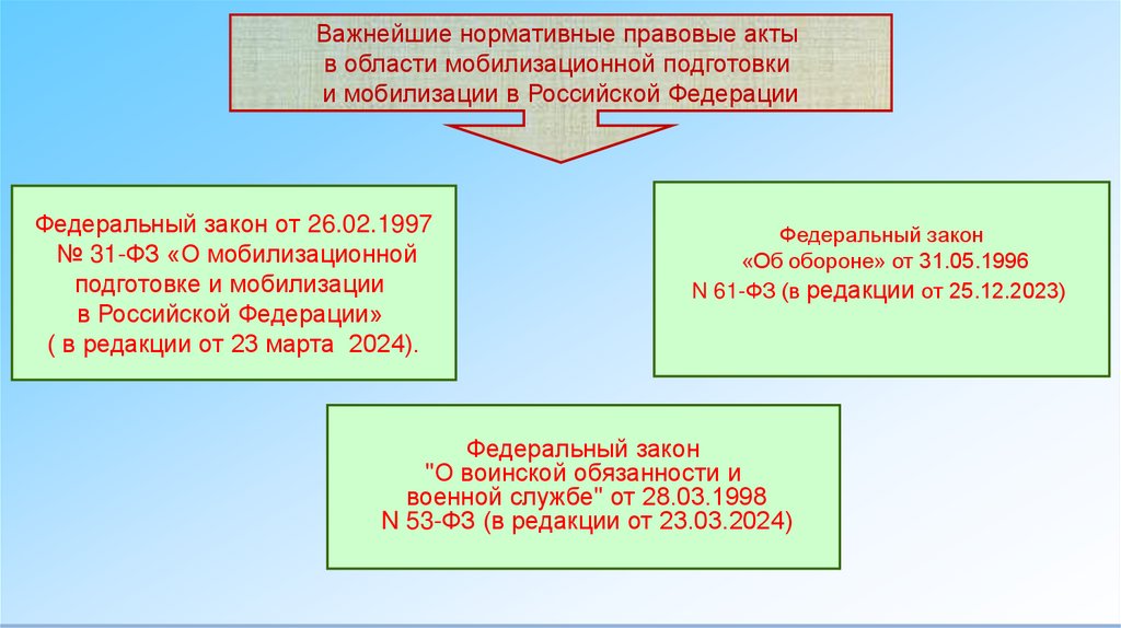 Важнейшие нормативные правовые актыв области мобилизационной подготовки