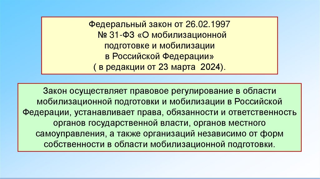 Федеральный закон от 26.02.1997№ 31-ФЗ «О мобилизационной