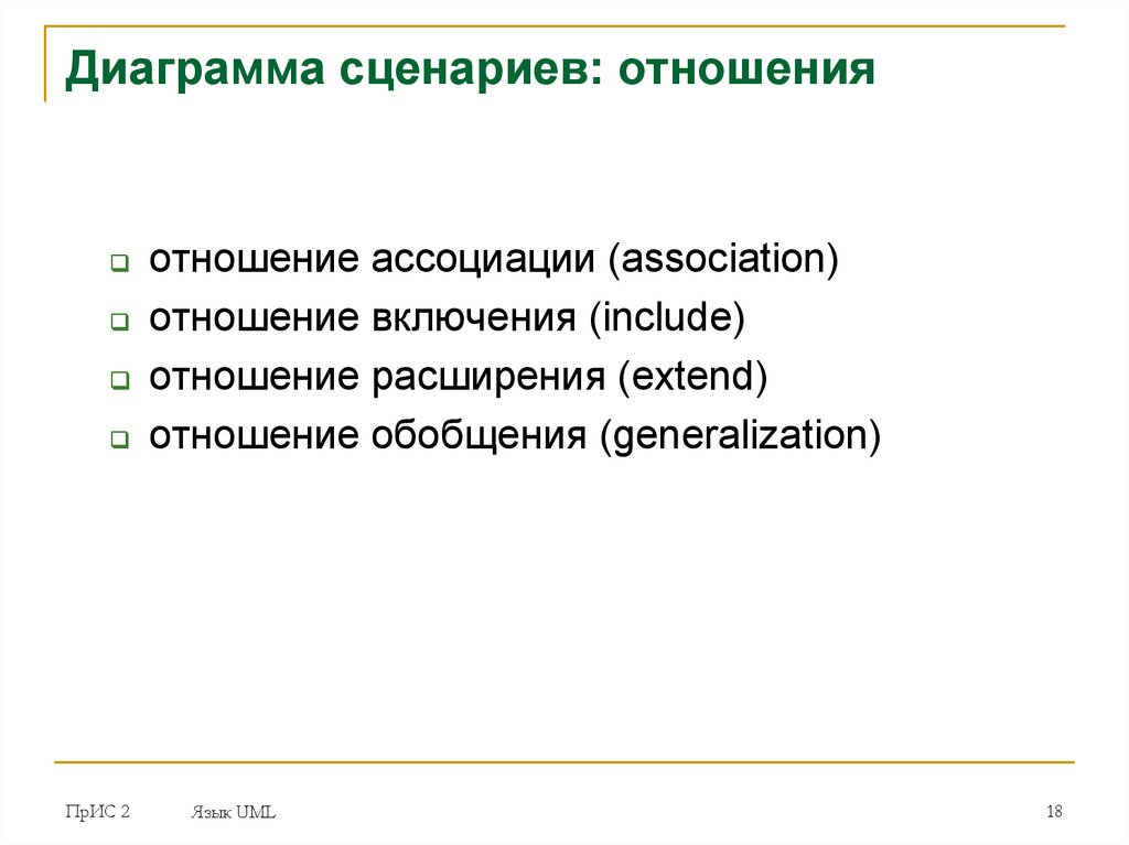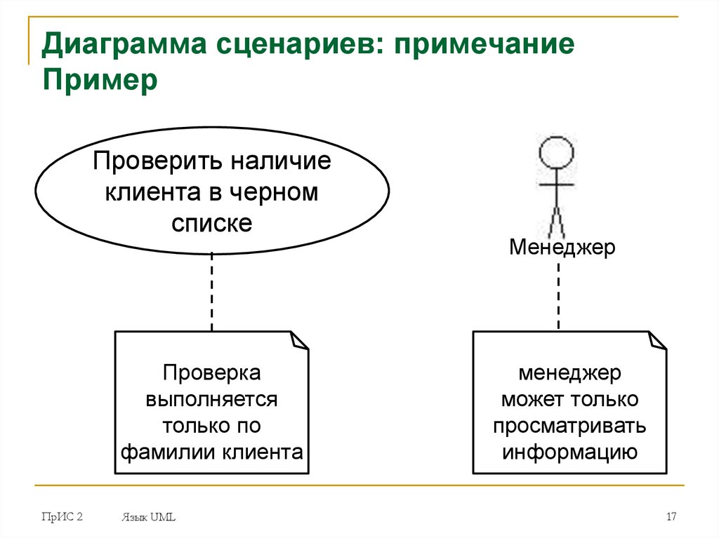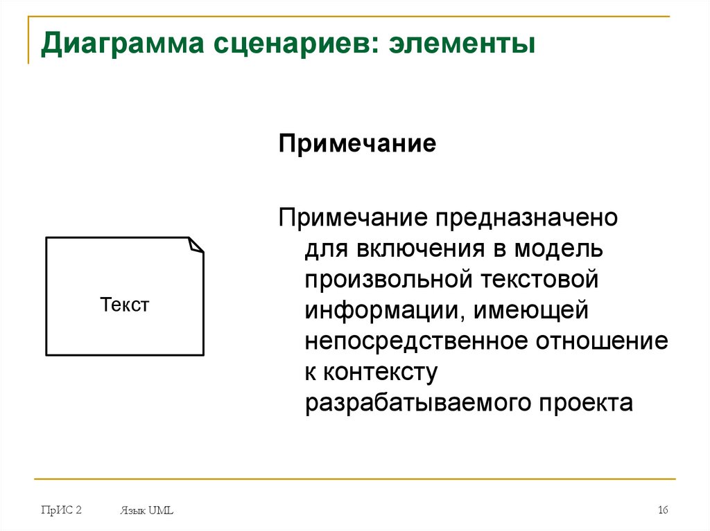 Диаграмма сценариев: элементыСценарий