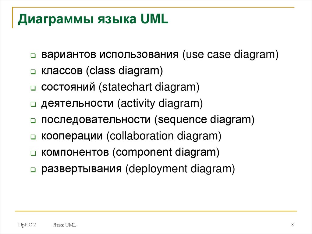 UML включает 8 основных диаграмм