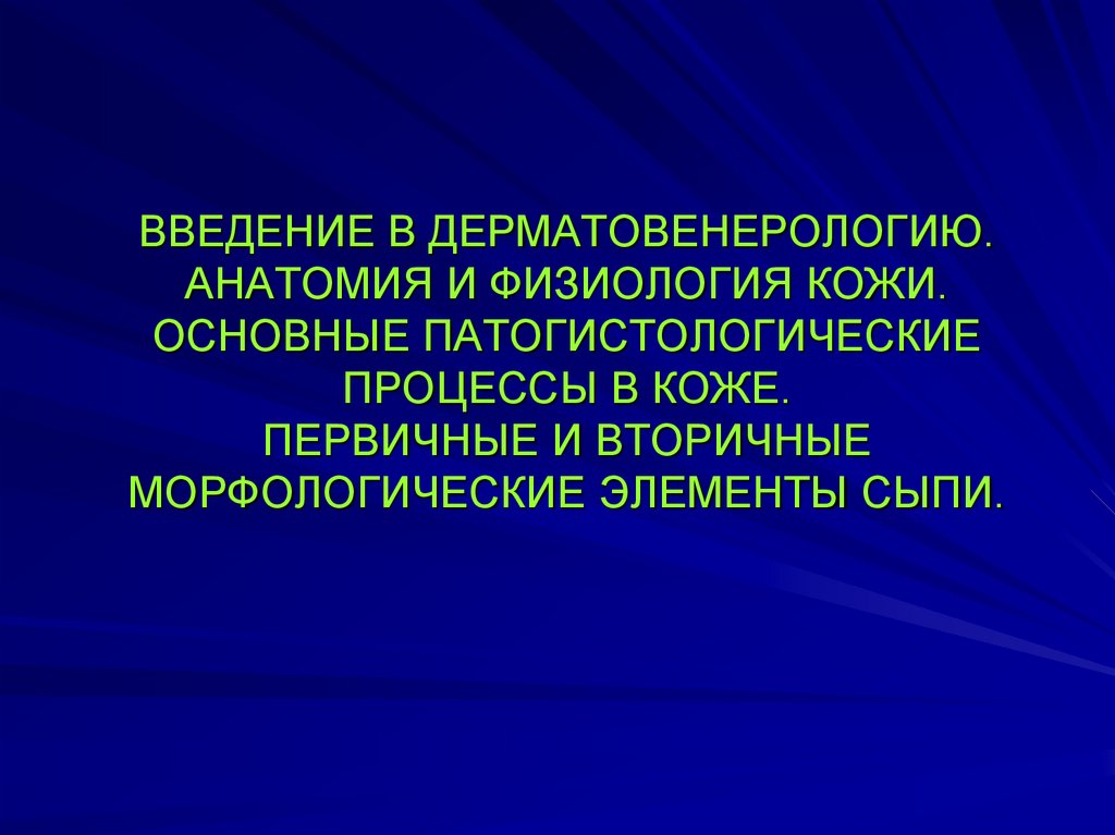 Введение в дерматовенерологию. Анатомия и физиология кожи. Основные патогистологические процессы в коже