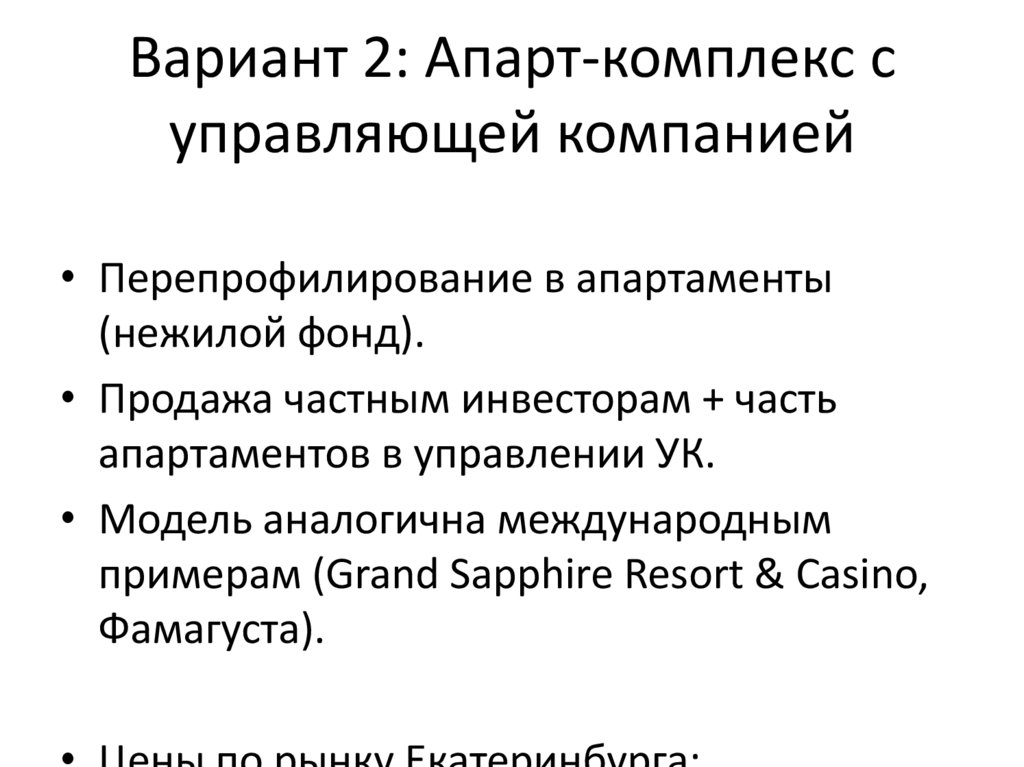 Вариант 2: Апарт-комплекс суправляющей компанией