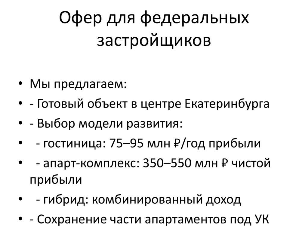 • - апарт-комплекс: 350–550 млн ₽ чистой