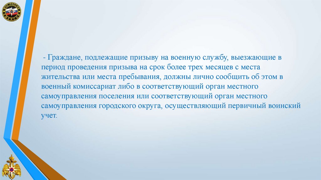 - Граждане, подлежащие призыву на военную службу, выезжающие впериод проведения призыва на срок более трех месяцев с места