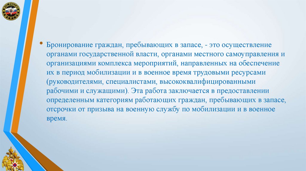 • Бронирование граждан, пребывающих в запасе, - это осуществлениеорганами государственной власти, органами местного самоуправления и