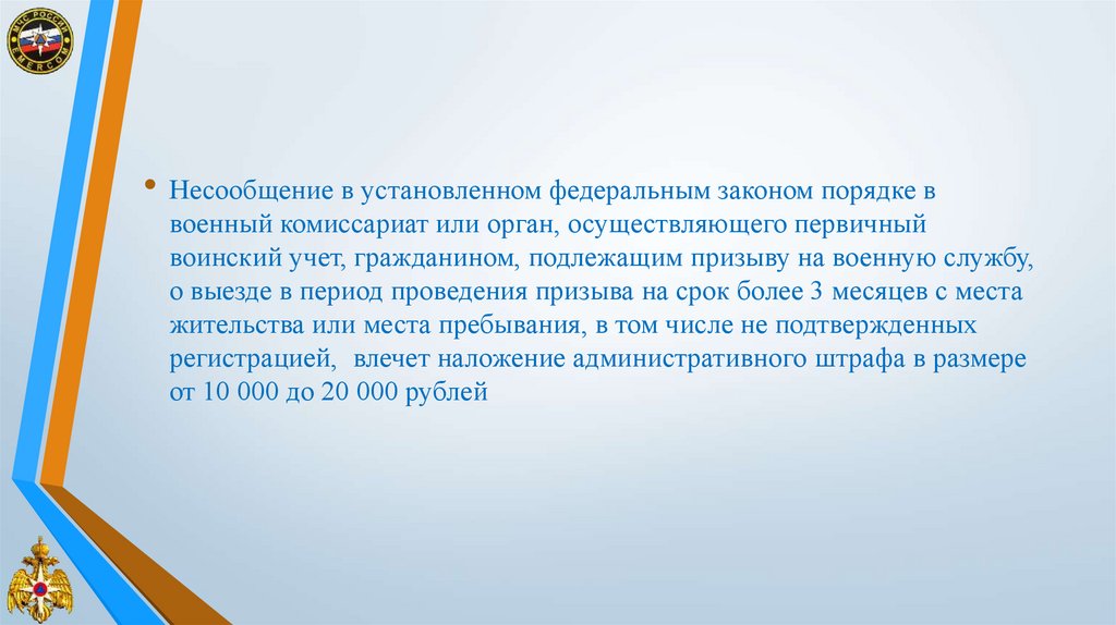 • Несообщение в установленном федеральным законом порядке ввоенный комиссариат или орган, осуществляющего первичный