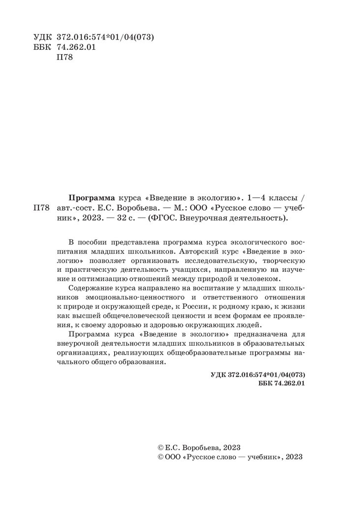 П78 авт.-сост. Е.С. Воробьева. — М.: ООО «Русское слово — учебник», 2023. — 32 с. — (ФГОС. Внеурочная деятельность).