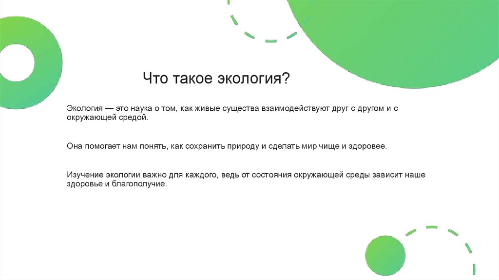 Что такое экология?Экология — это наука о том, как живые существа взаимодействуют друг с другом и с
