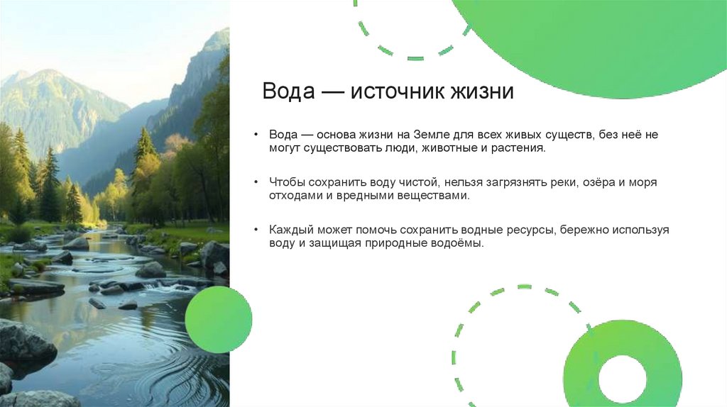 Вода — источник жизни• Вода — основа жизни на Земле для всех живых существ, без неё не
