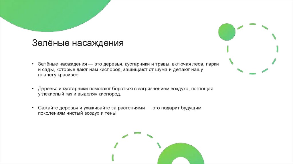 Зелёные насаждения• Зелёные насаждения — это деревья, кустарники и травы, включая леса, парки
