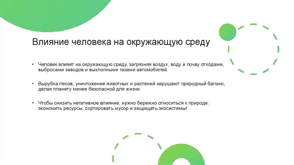 • Чтобы снизить негативное влияние, нужно бережно относиться к природе: