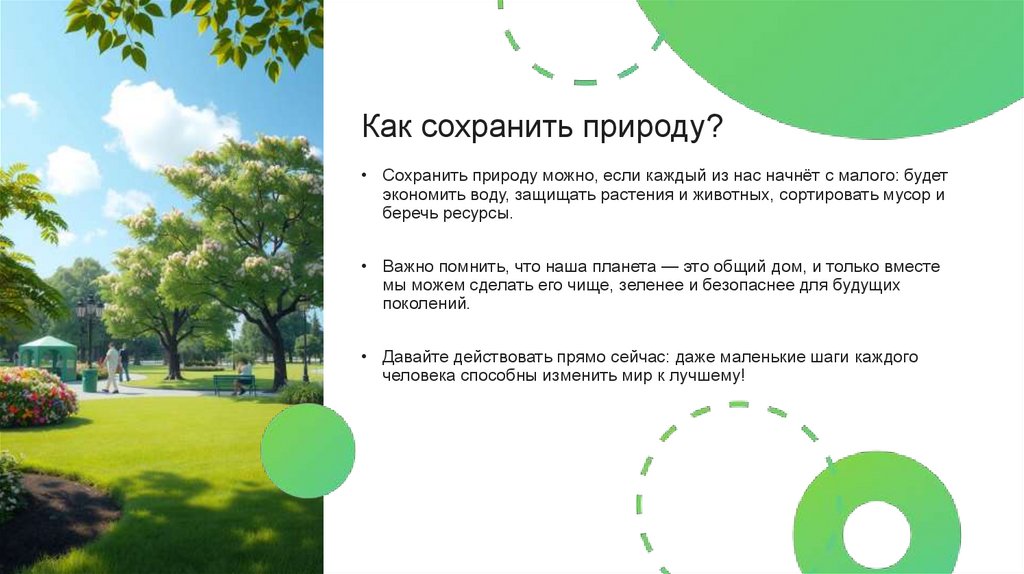 Как сохранить природу?• Сохранить природу можно, если каждый из нас начнёт с малого: будет