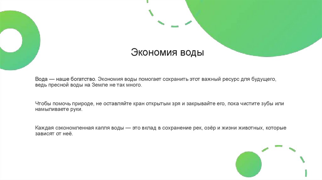 Экономия водыВода — наше богатство. Экономия воды помогает сохранить этот важный ресурс для будущего,