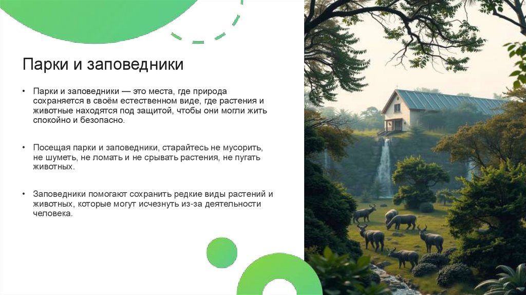 Парки и заповедники• Парки и заповедники — это места, где природа
