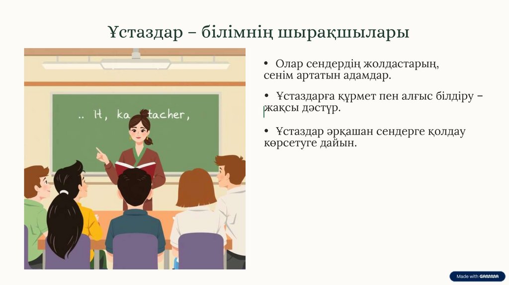 • Ұстаздарға құрмет пен алғыс білдіру –