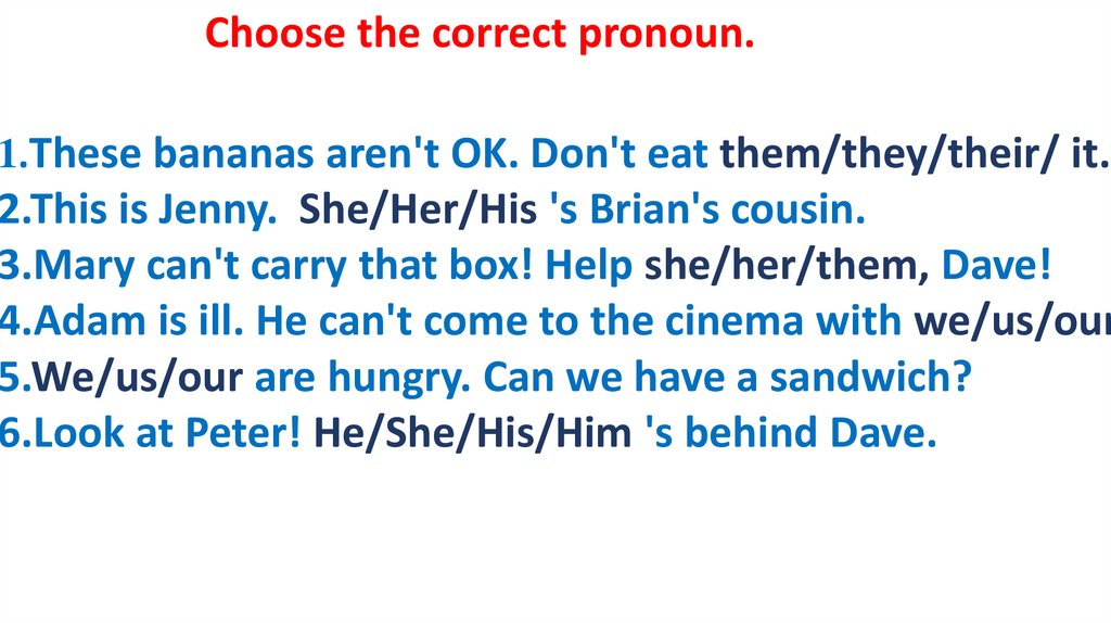 Choose the correct pronoun.1.These bananas aren't OK. Don't eat them/they/their/ it.