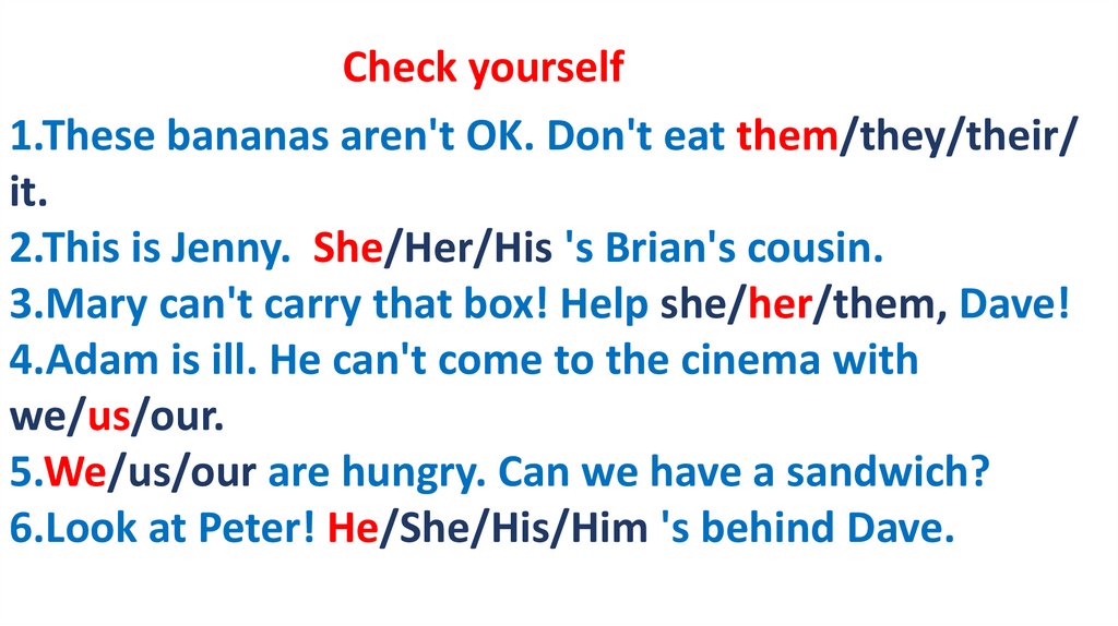 Check yourself1.These bananas aren't OK. Don't eat them/they/their/