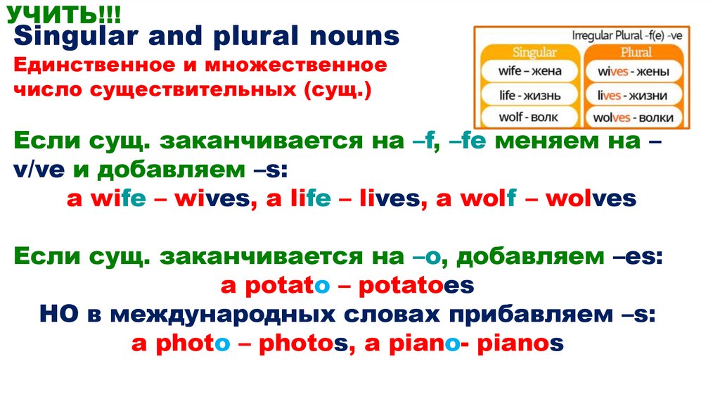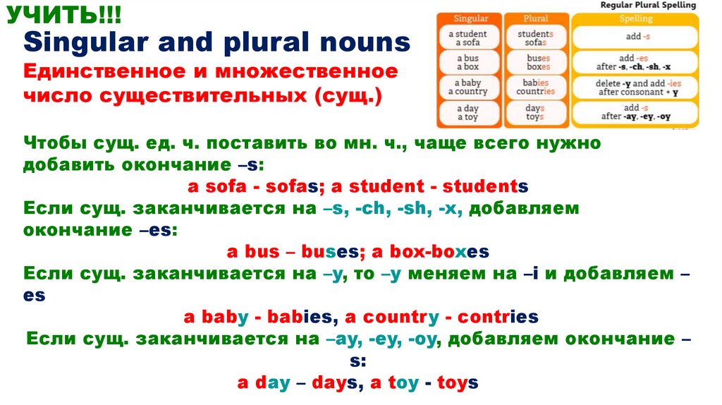Если сущ. заканчивается на –y, то –y меняем на –i и добавляем –