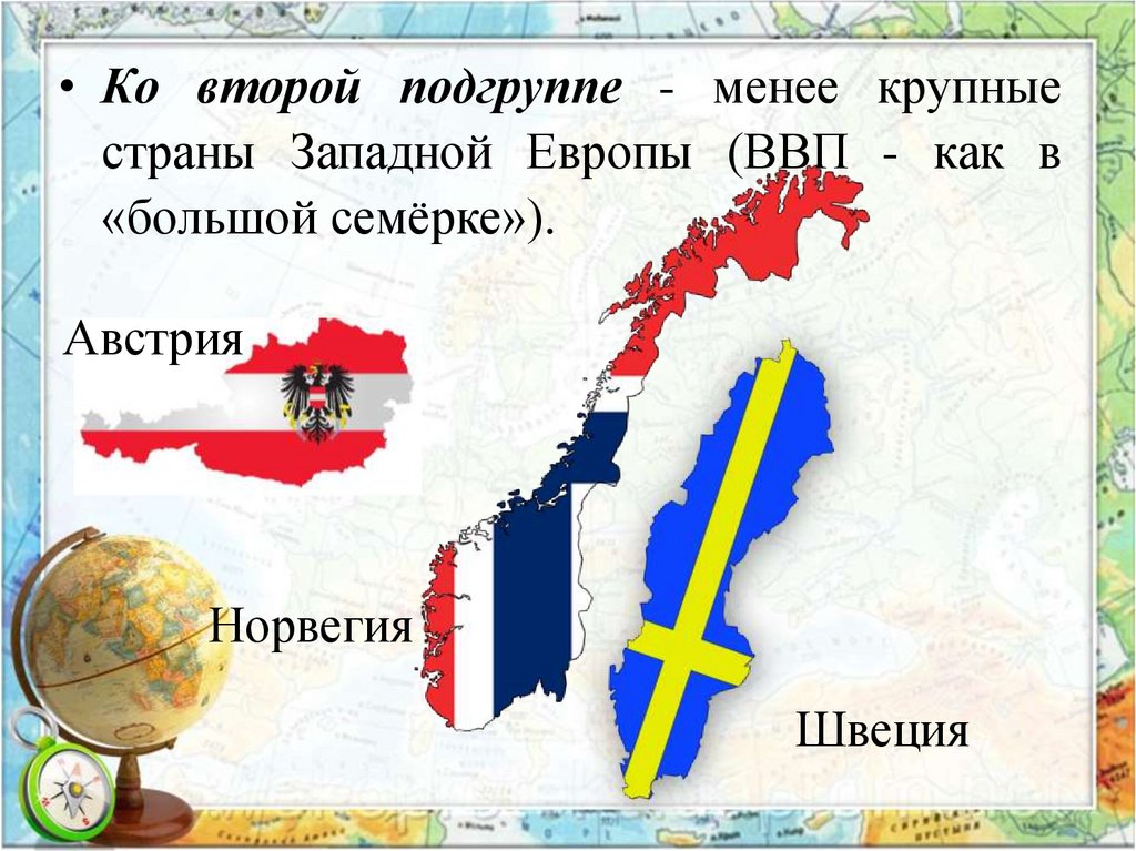 • Ко второй подгруппе - менее крупныестраны Западной Европы (ВВП - как в