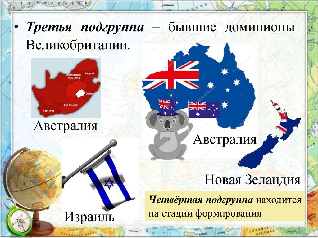 • Третья подгруппа – бывшие доминионыВеликобритании.