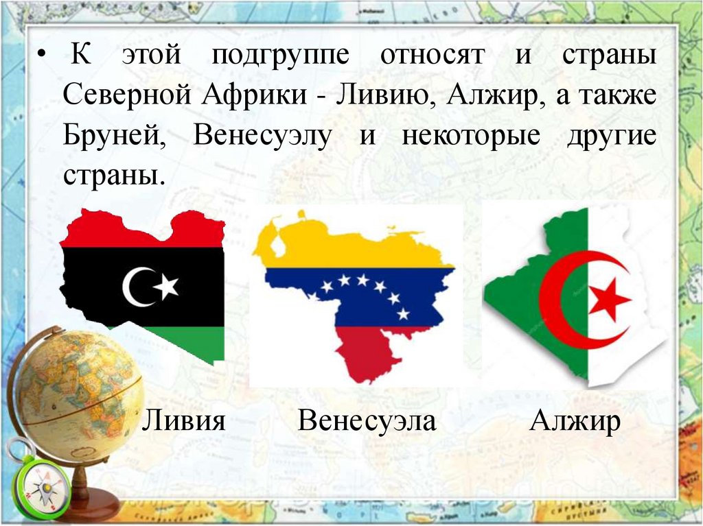 • К этой подгруппе относят и страныСеверной Африки - Ливию, Алжир, а также