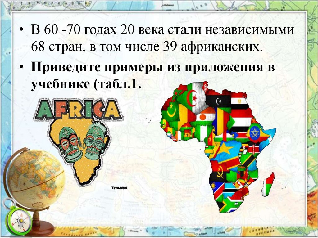 • В 60 -70 годах 20 века стали независимыми68 стран, в том числе 39 африканских.
