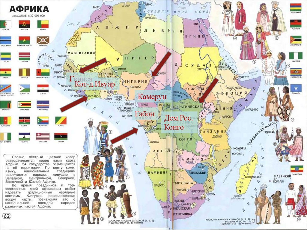 Африка: Чад, Эфиопия, Сомали, Мозамбик.