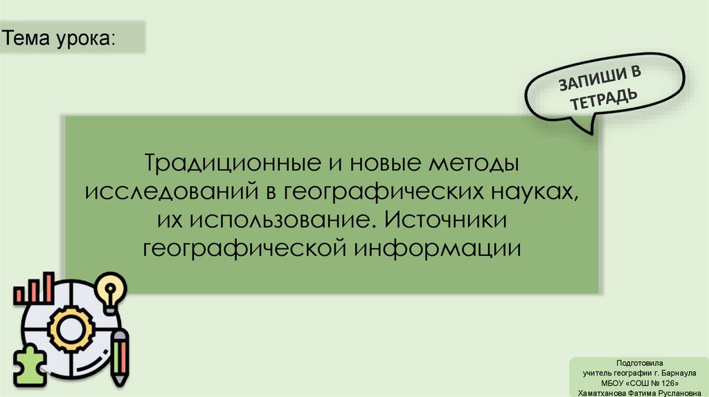 Тема урока:Традиционные и новые методы
