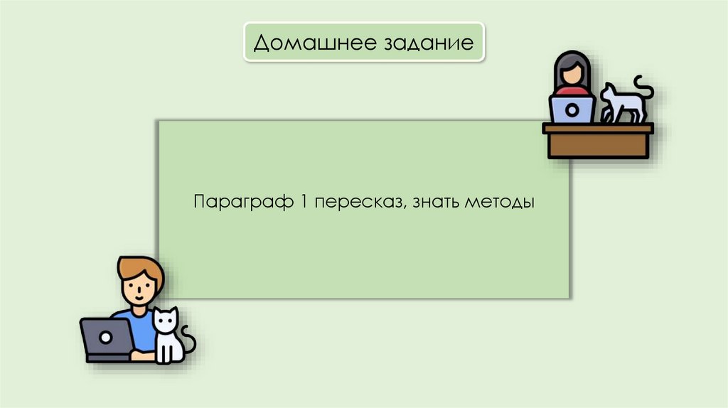 Домашнее заданиеПараграф 1 пересказ, знать методы