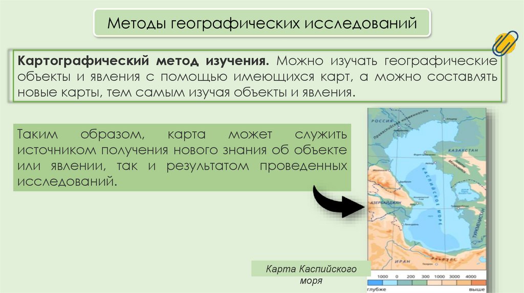 Методы географических исследованийКартографический метод изучения. Можно изучать географические