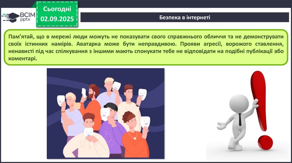 Пам’ятай, що в мережі люди можуть не показувати свого справжнього обличчя та не демонструвати