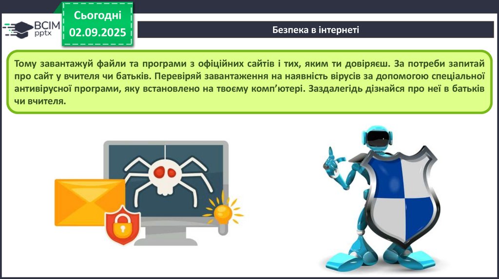 про сайт у вчителя чи батьків. Перевіряй завантаження на наявність вірусів за допомогою спеціальної
