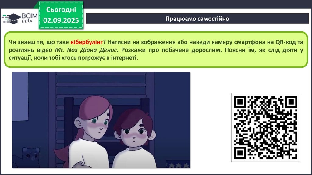 Чи знаєш ти, що таке кібербулінг? Натисни на зображення або наведи камеру смартфона на QR-код та