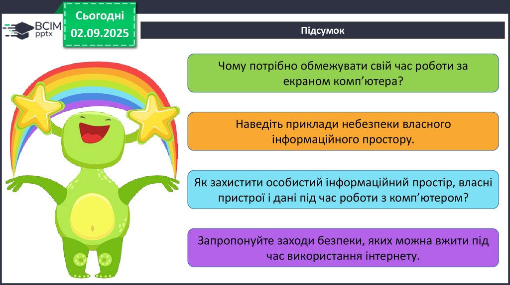 час. Завжди розповідай батькам або комусь із старших про сайти, які ти відвідуєш, чи пропозиції, які