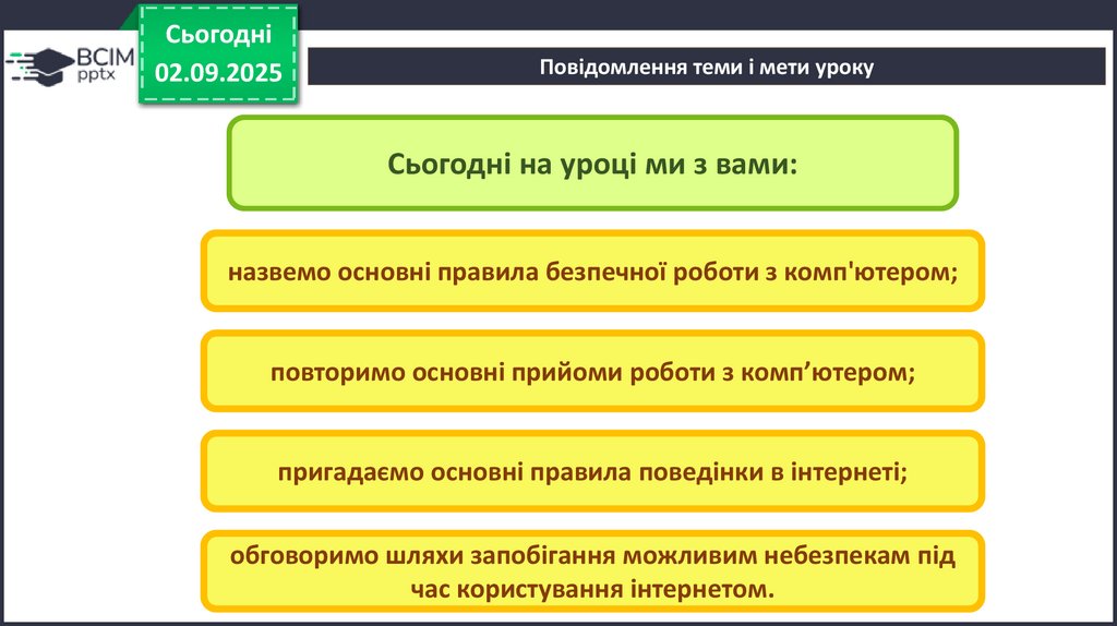 Правила безпечної поведінки у кабінеті інформатики. Повторення основних прийомів роботи із комп'ютером. Безпека в інтернеті