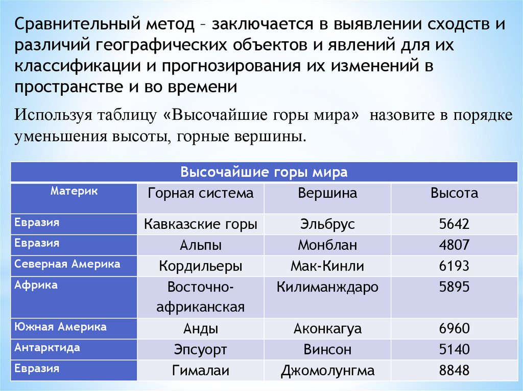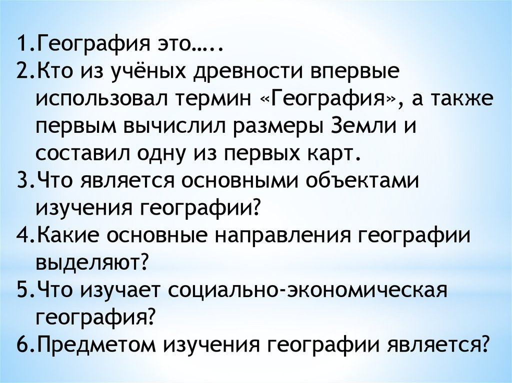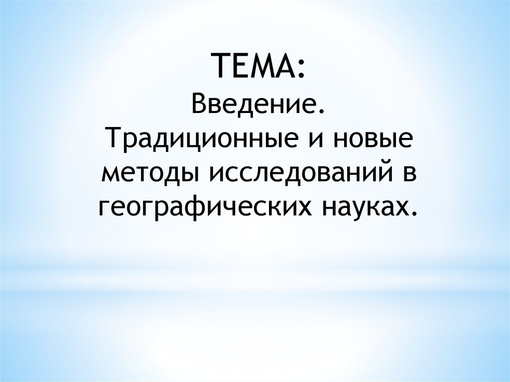 Введение. Традиционные и новые методы исследований в географических науках. 10-11 классы
