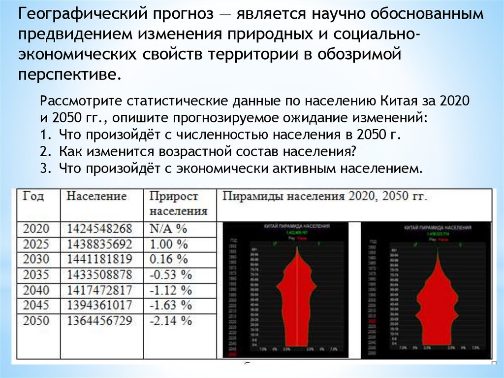 Географический прогноз — является научно обоснованнымпредвидением изменения природных и социальноэкономических свойств территории в обозримой