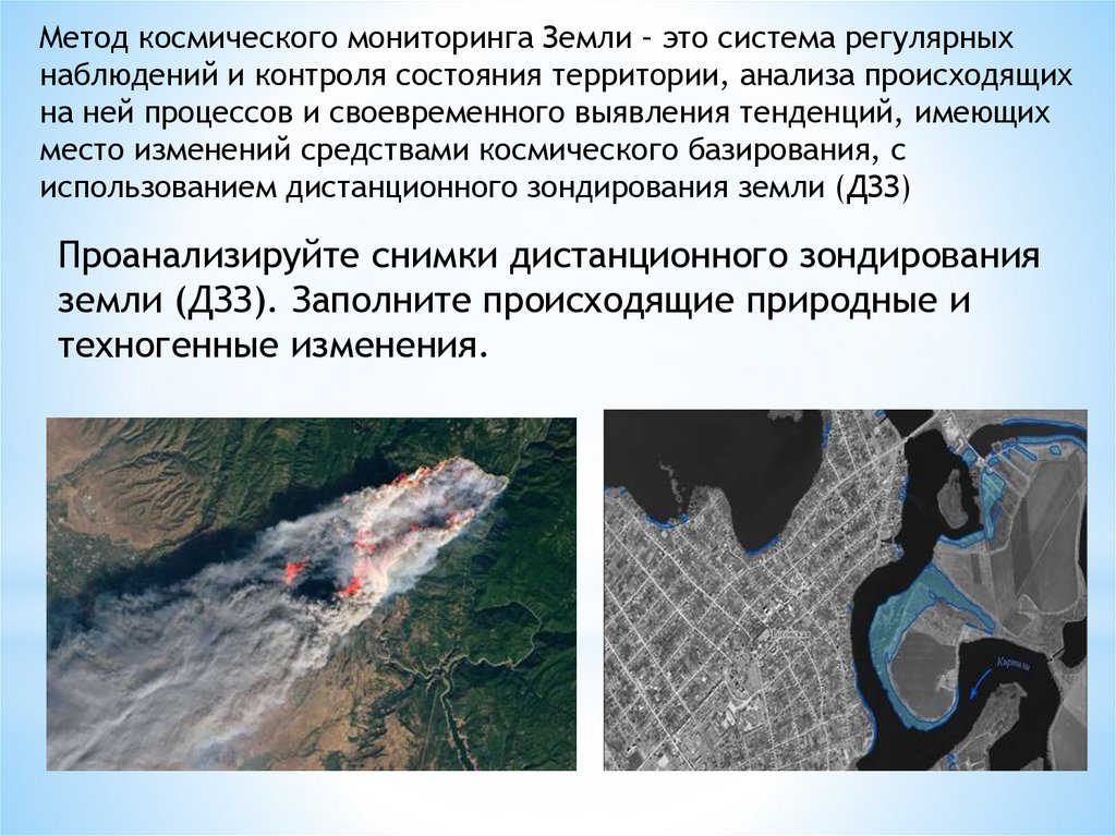 Метод космического мониторинга Земли – это система регулярныхнаблюдений и контроля состояния территории, анализа происходящих